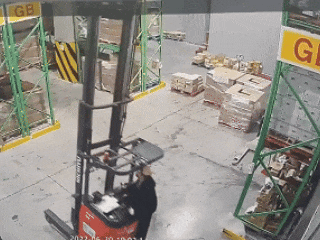 叉车的视野本就有限,司机坐姿较低、前方有门架遮挡。在盲区抢行极容易造成碰撞或紧急制动。而紧急制动,又可能导致前倾事故。