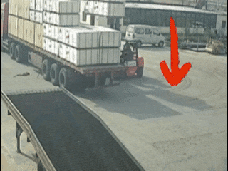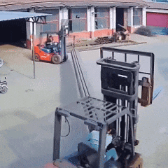 前倾发生时,司机可能被甩向前方,撞击门架或货物。车辆前倾幅度虽然不大,但剧烈冲击足以造成严重伤害。